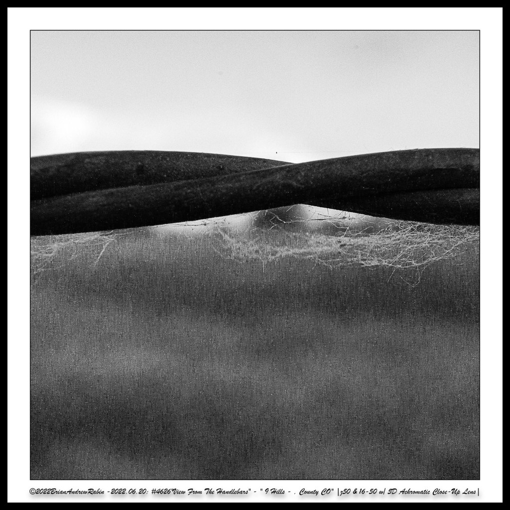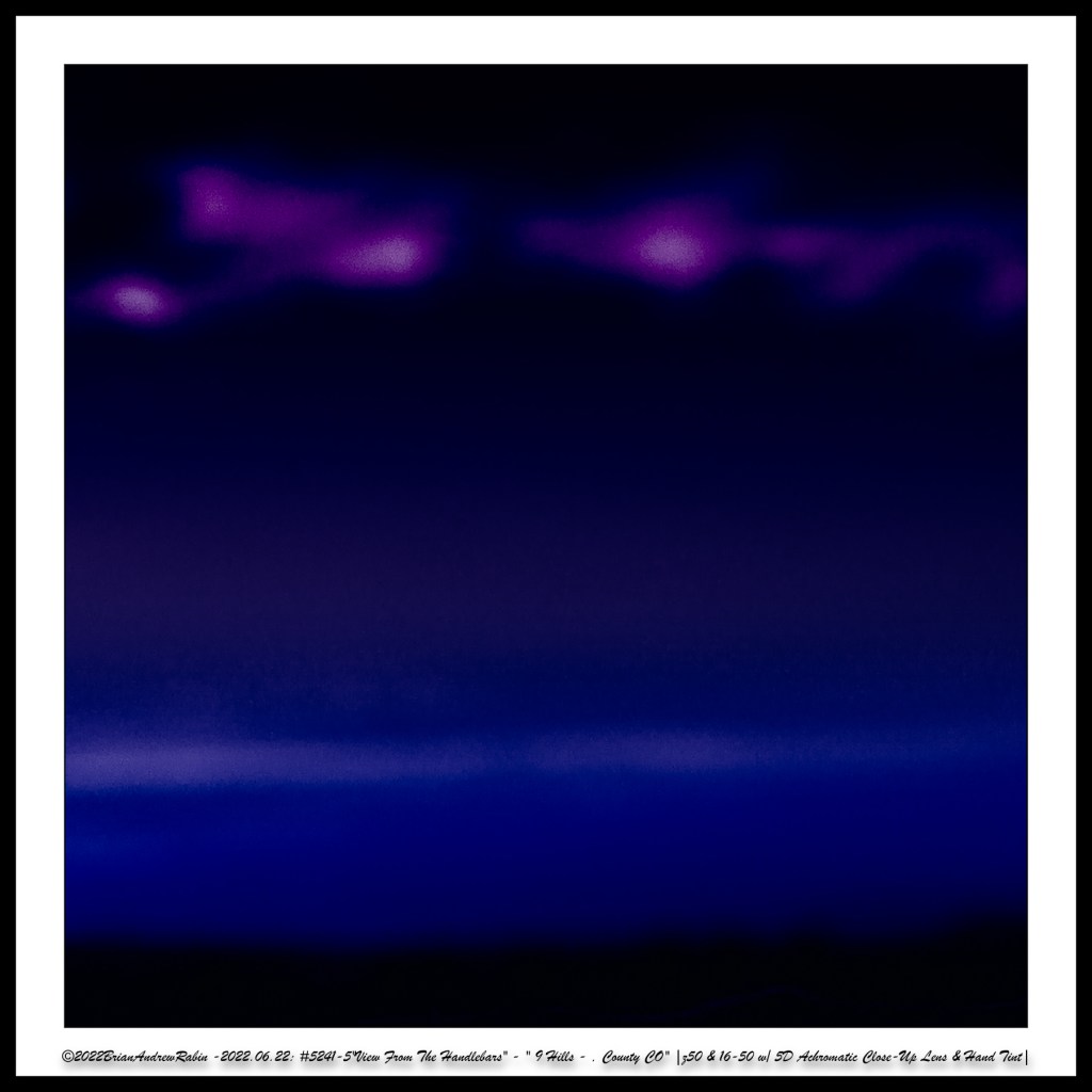 This sense of presence and perception is central to the View from the Handlebars series. Many of the color images were inspired by the artist Mark Rothko, an American abstract painter known for his signature style of large, blurred fields of solid color, often arranged as soft-edged rectangles against monochrome backgrounds. Each color palette in these rows was intentionally selected to imitate a specific Rothko painting, reflecting his emotional depth and minimalist vision while capturing the stillness and subtlety discovered during each ride.