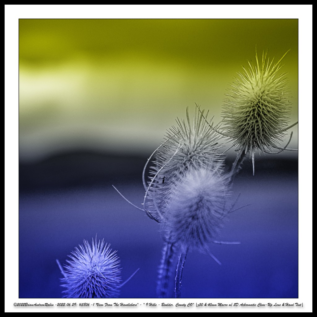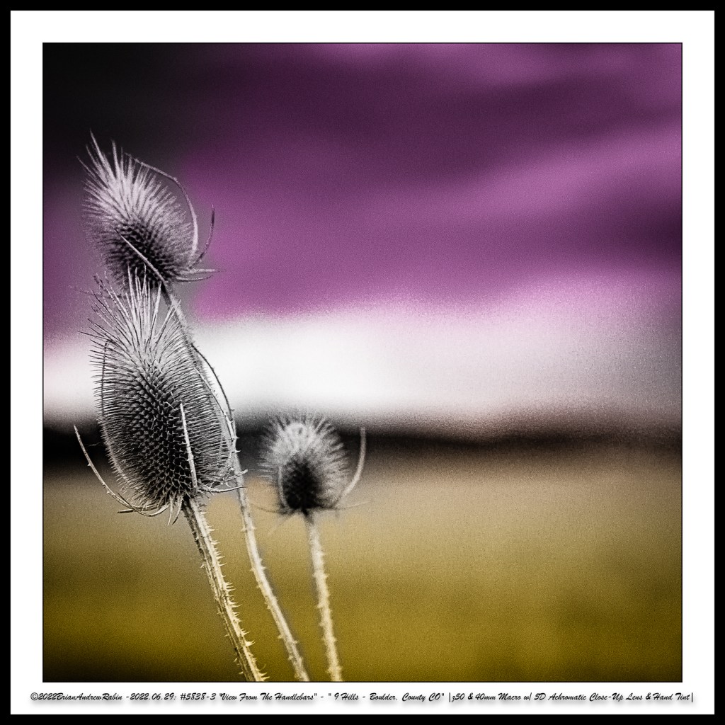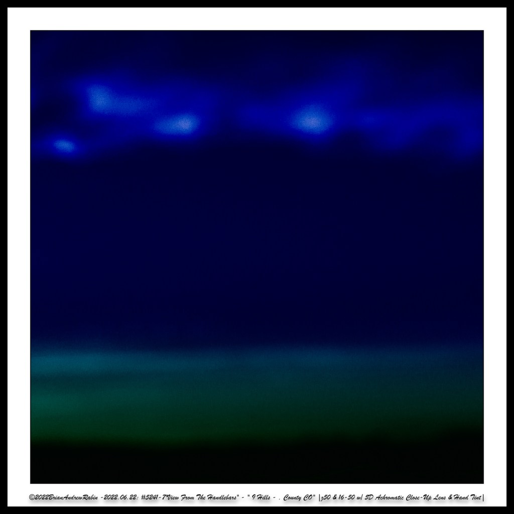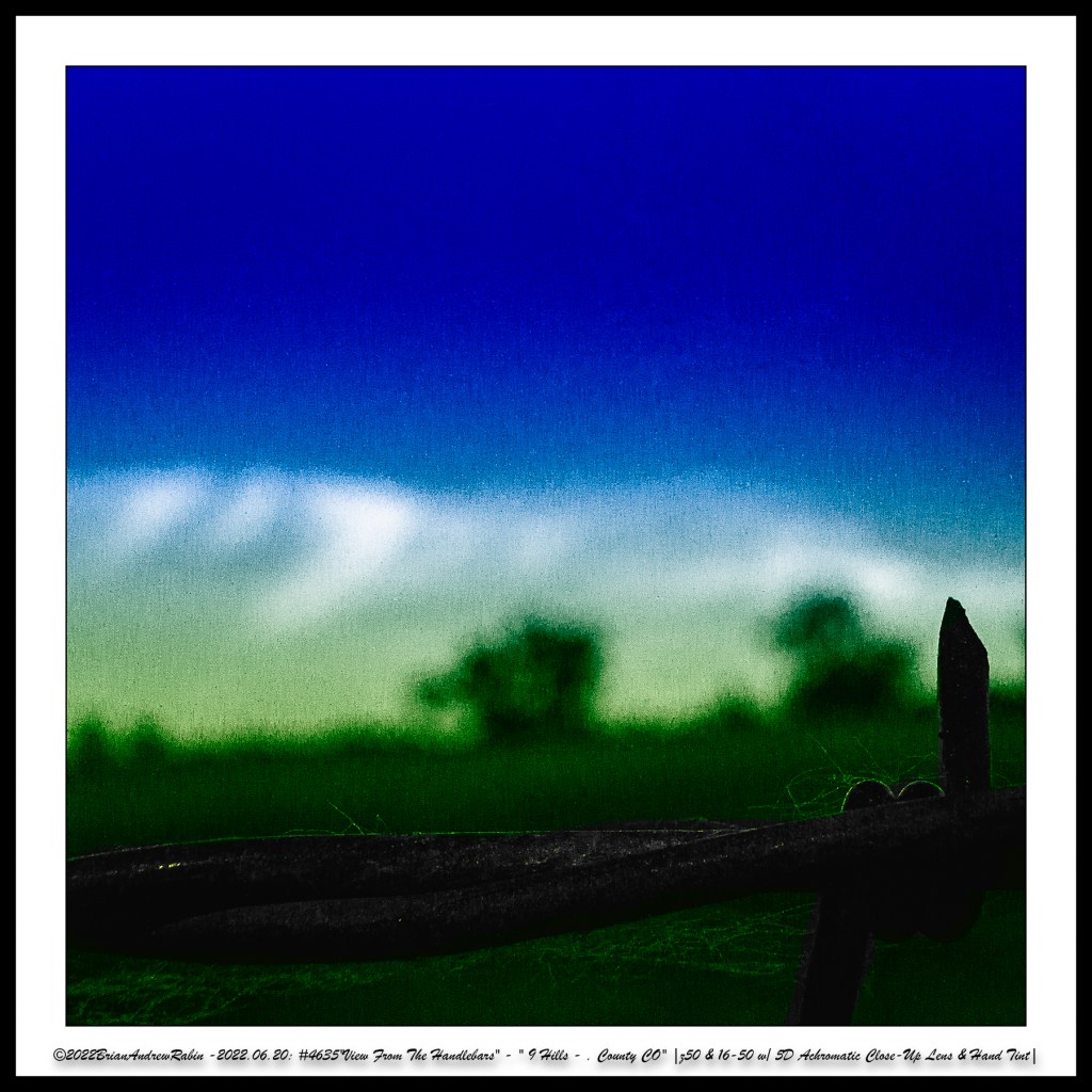 The close-up photographs in these rows were taken with a 40mm macro lens paired with a +5 achromatic close-up filter. These images were then hand-colored in a “Rothko-esque” style to evoke the painter’s meditative intensity and emotional resonance—transforming small roadside moments into abstract expressions of mood, light, and time.