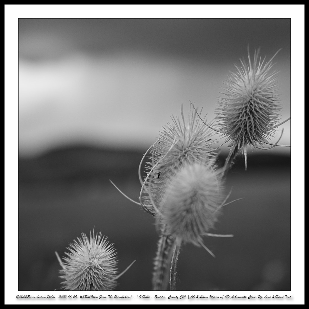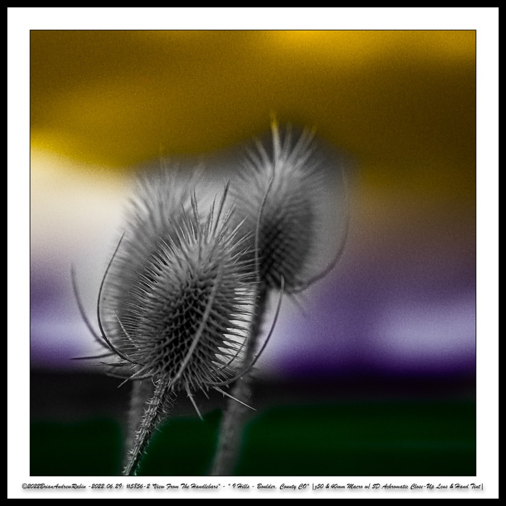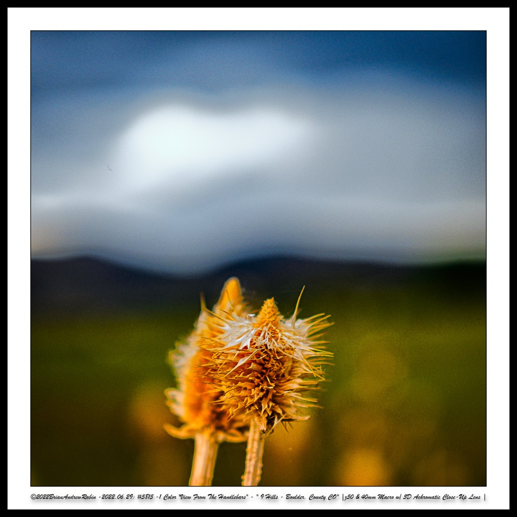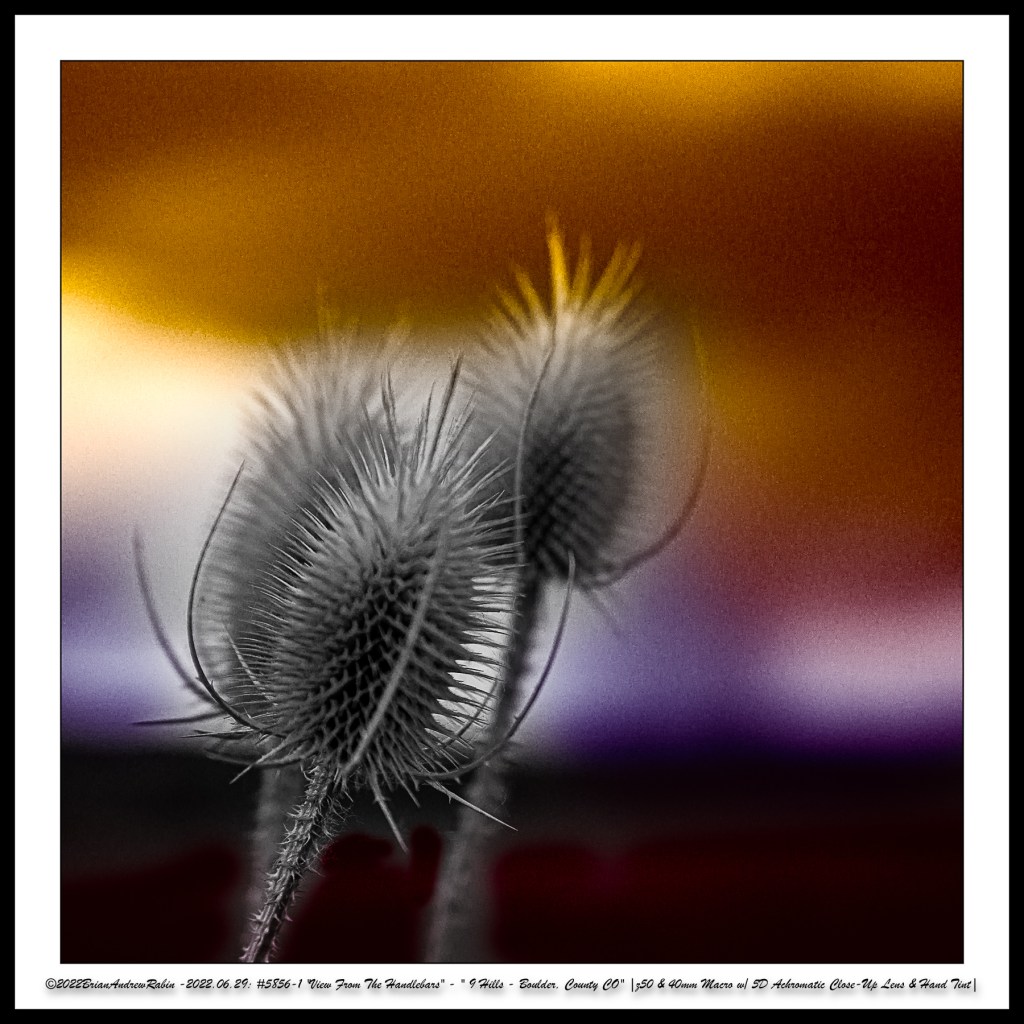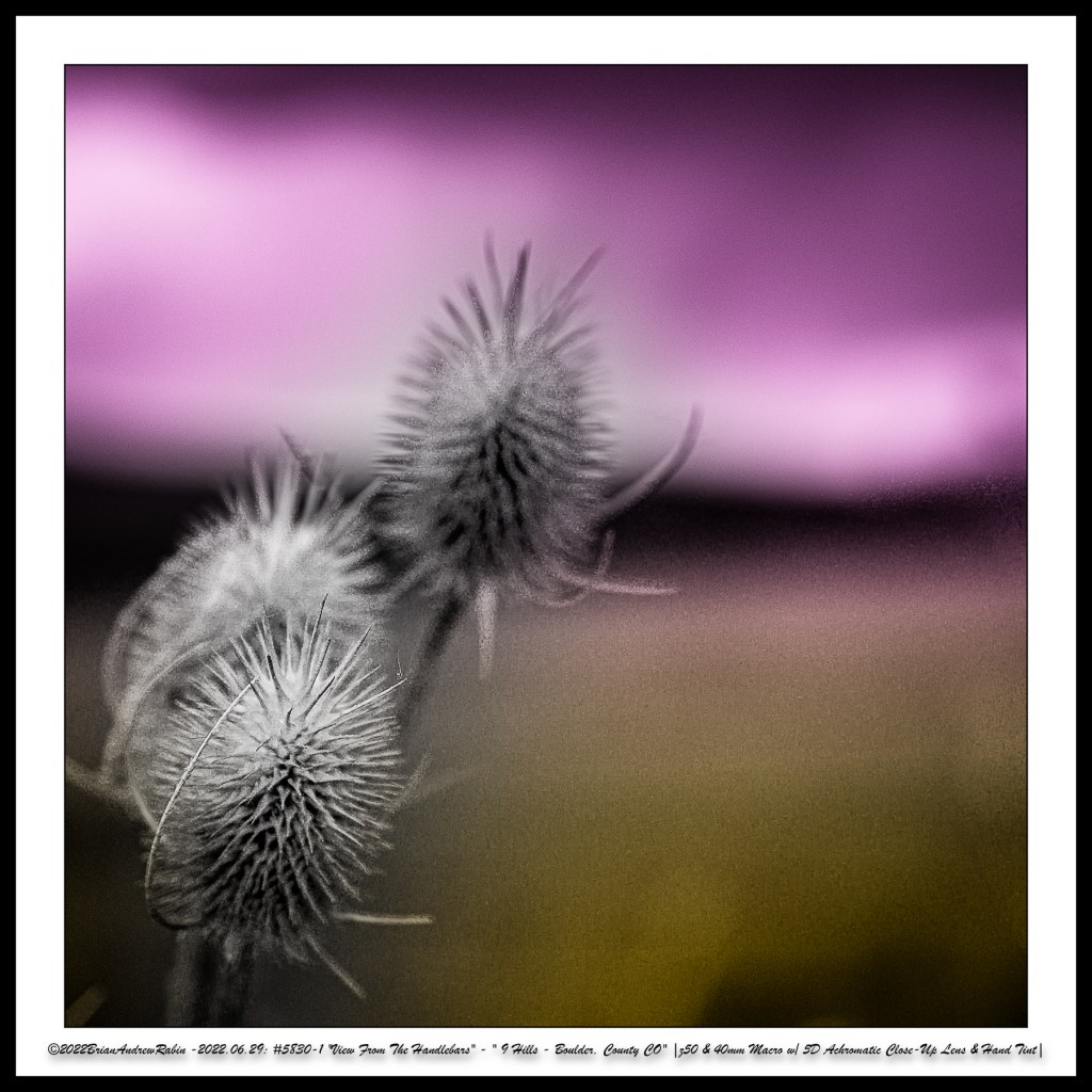 The close-up photographs in these rows were taken with a 40mm macro lens paired with a +5 achromatic close-up filter. These images were then hand-colored in a “Rothko-esque” style to evoke the painter’s meditative intensity and emotional resonance—transforming small roadside moments into abstract expressions of mood, light, and time.