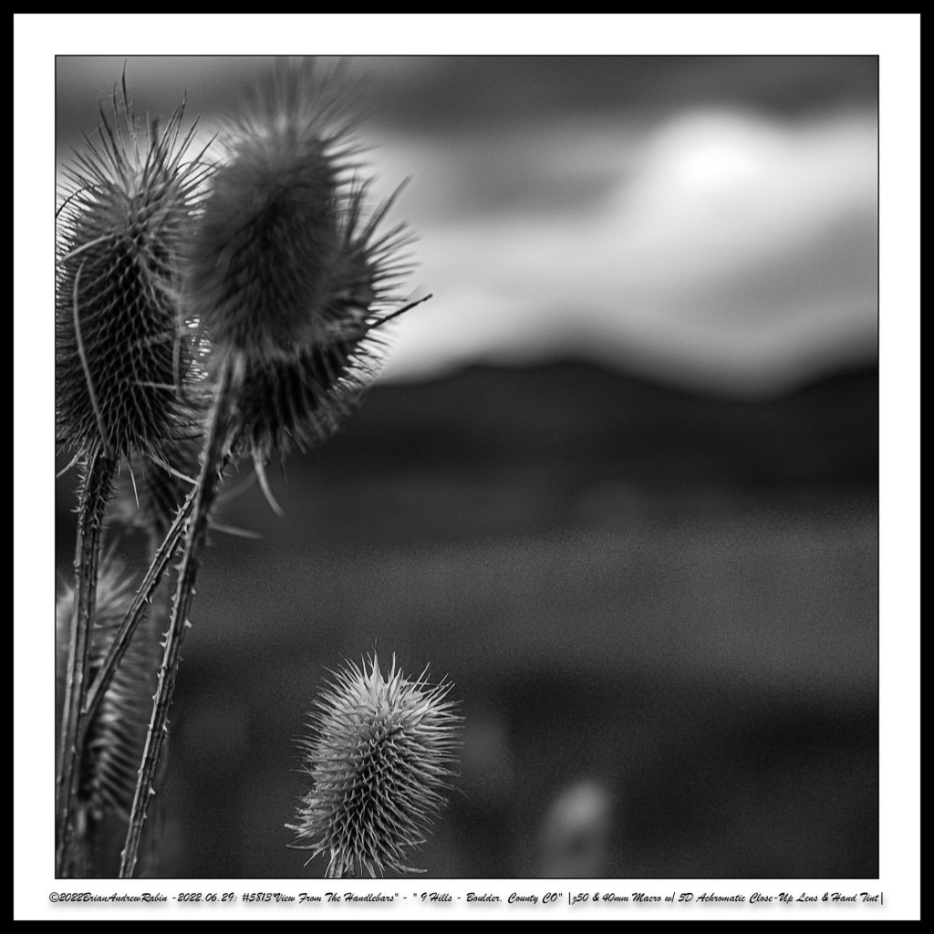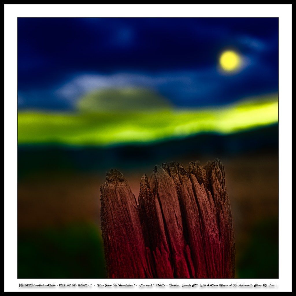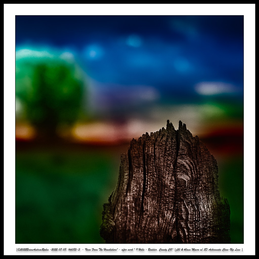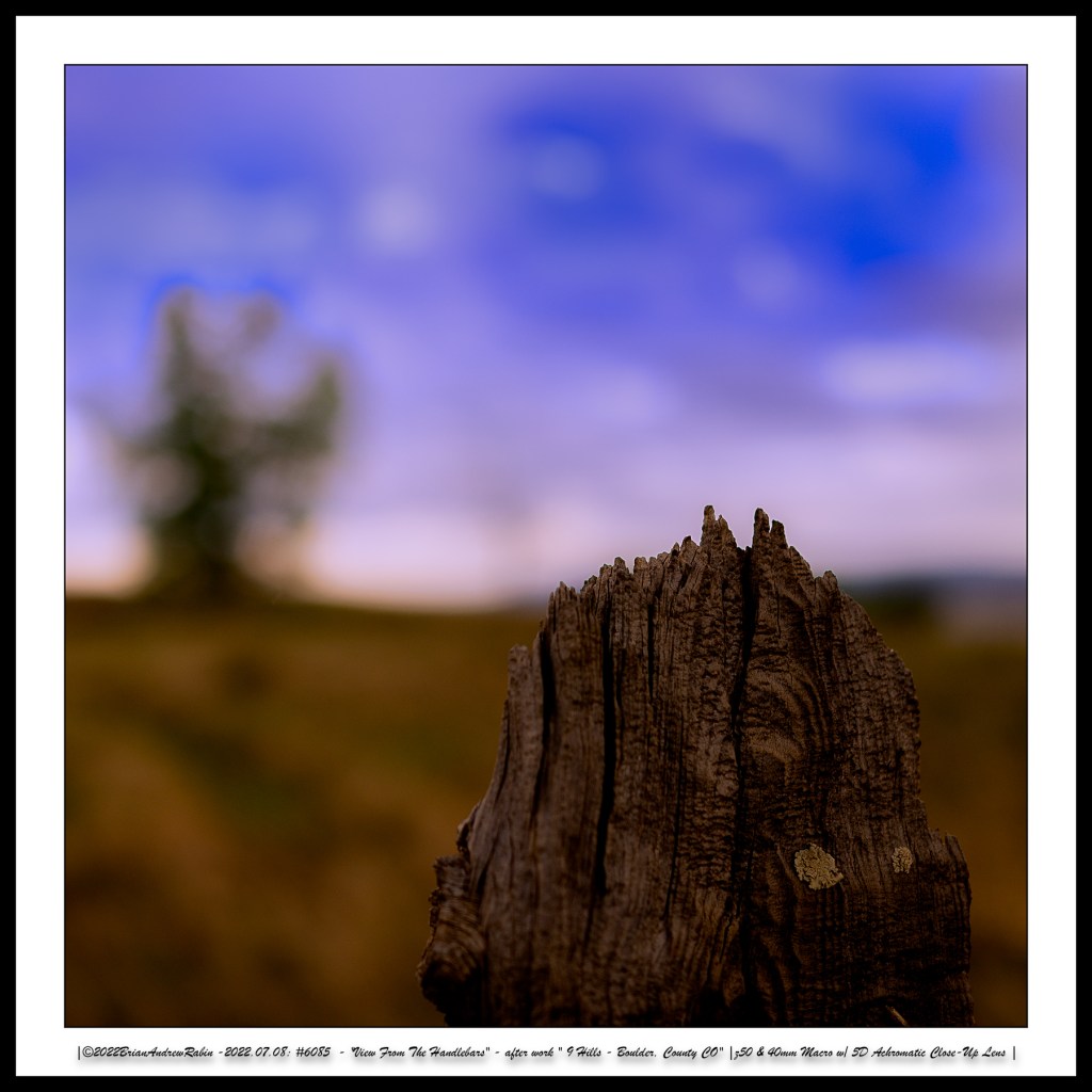 The close-up photographs in these rows were taken with a 40mm macro lens paired with a +5 achromatic close-up filter. These images were then hand-colored in a “Rothko-esque” style to evoke the painter’s meditative intensity and emotional resonance—transforming small roadside moments into abstract expressions of mood, light, and time.